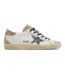 Golden Goose Super-Star white upper silver/black glitter star patch and a brown glitter heel tab.