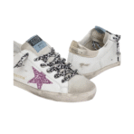 Golden Goose Super-Star – white leather featuring a pink glitter star